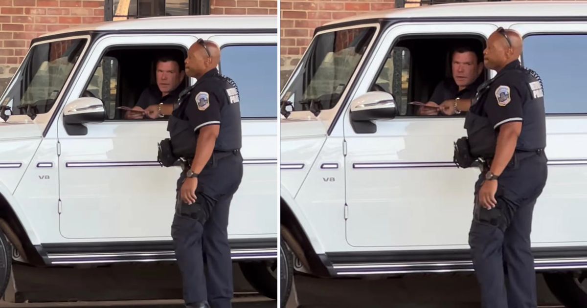 Caught in a bright white Jeep in the heart of Georgetown, the Fox News veteran was seen calmly handing over paperwork to an officer… but the internet definitely noticed something else.