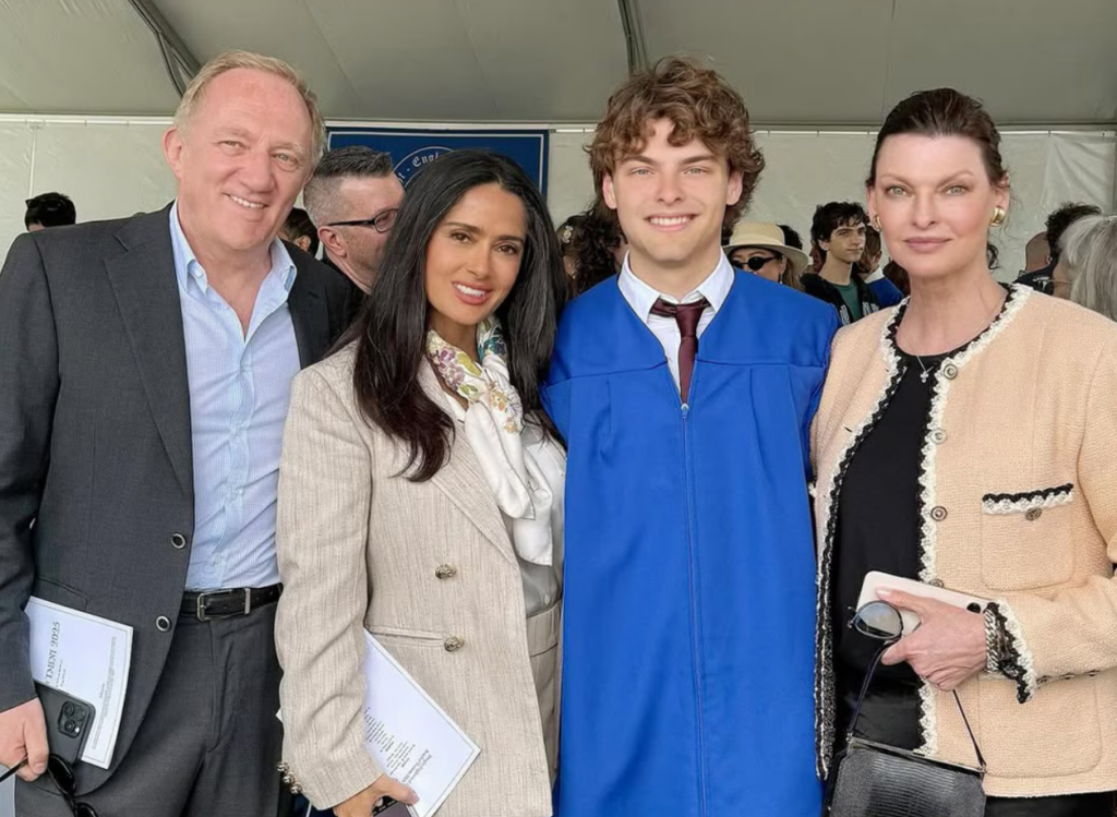 The moment offered a rare public glimpse into a blended family dynamic that has largely stayed out of the spotlight over the years. Augustin was seen wearing a royal blue cap and gown as he received his diploma, with both parents and Hayek celebrating the achievement alongside him.