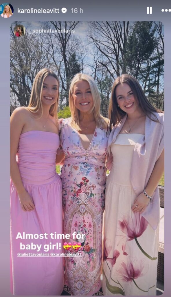 In the images posted to social media, Leavitt is seen wearing a flowing pink floral dress, highlighting her baby bump as she celebrates alongside close friends and family. The setting reflected a joyful and intimate gathering, centered on the excitement of welcoming a new addition to the family.