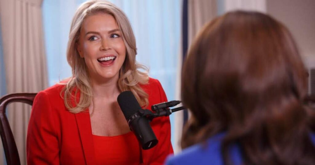 Despite the demands of her role in Washington, Leavitt said her home life remains grounded, with her husband playing an active role in their family.