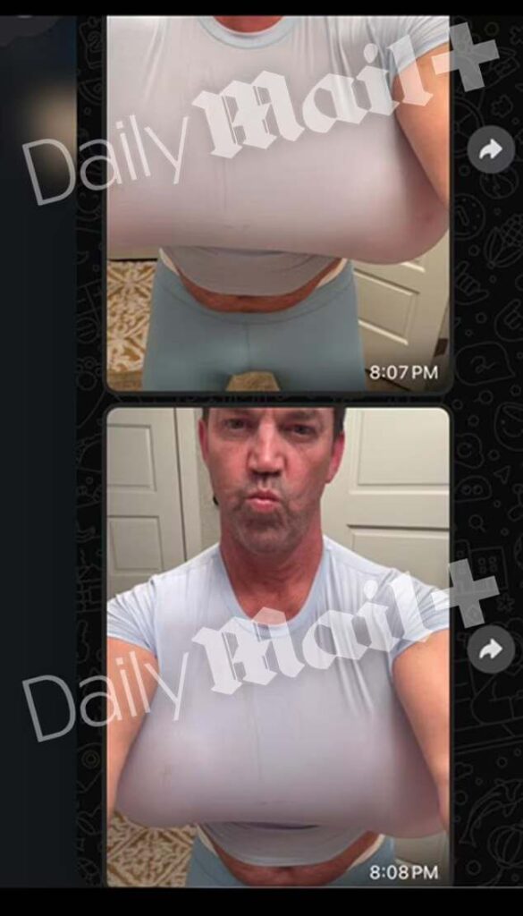 Photographs cited in the report allegedly show Noem posing in women’s clothing, including tight outfits designed to simulate exaggerated body features. In one image, he is described as wearing a crop top and shorts while using improvised materials to mimic breasts.