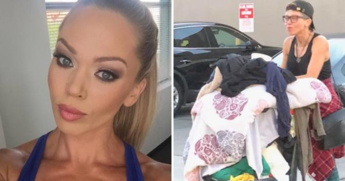 The former fitness model has been living on the streets since 2016. She was seen pushing a cart filled with clothes, blankets, and a sleeping pillow.