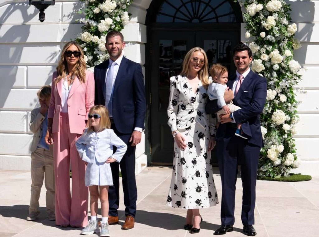 The gathering also included other members of the Trump family. Tiffany, Boulos, and their son posed for photos alongside Eric Trump and his wife Lara Trump, who were accompanied by their two children, Eric “Luke” Trump, 8, and Carolina Dorothy Trump, 6.